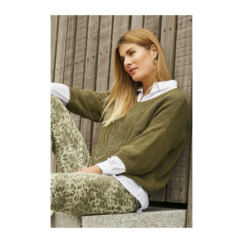 - 2-Biz Grønn Cashew Strikkebluse er en elegant og komfortabel gensar for damer, designet for å passe til enhver anledning.