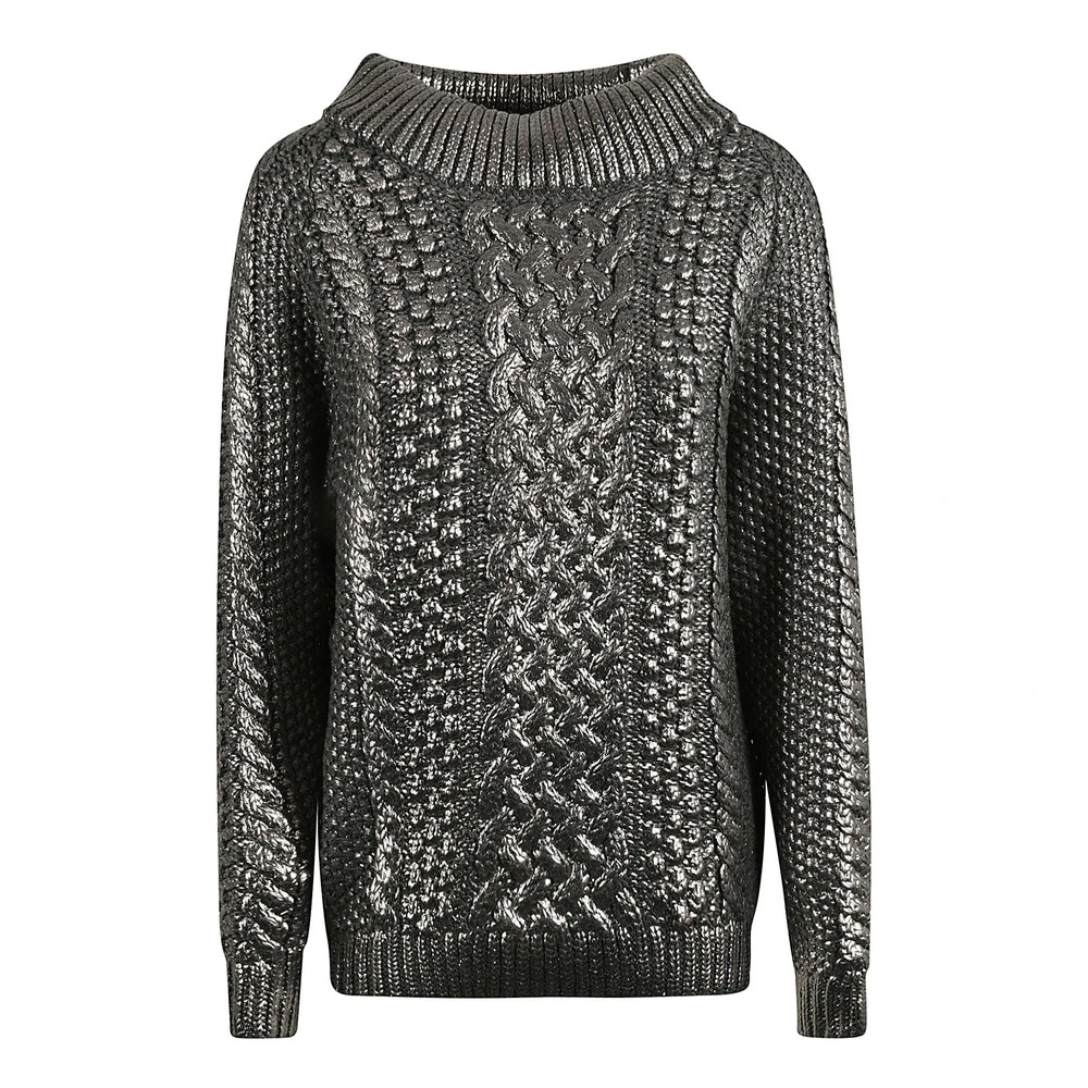- Alberta Ferrettis grå rundhalset strikkegenser er en must-have for den moderne kvinnen. Denne elegante overdelen er laget av mykt og behagelig materiale, noe som gjør den perfekt for både høytider og hverdagsbruk.