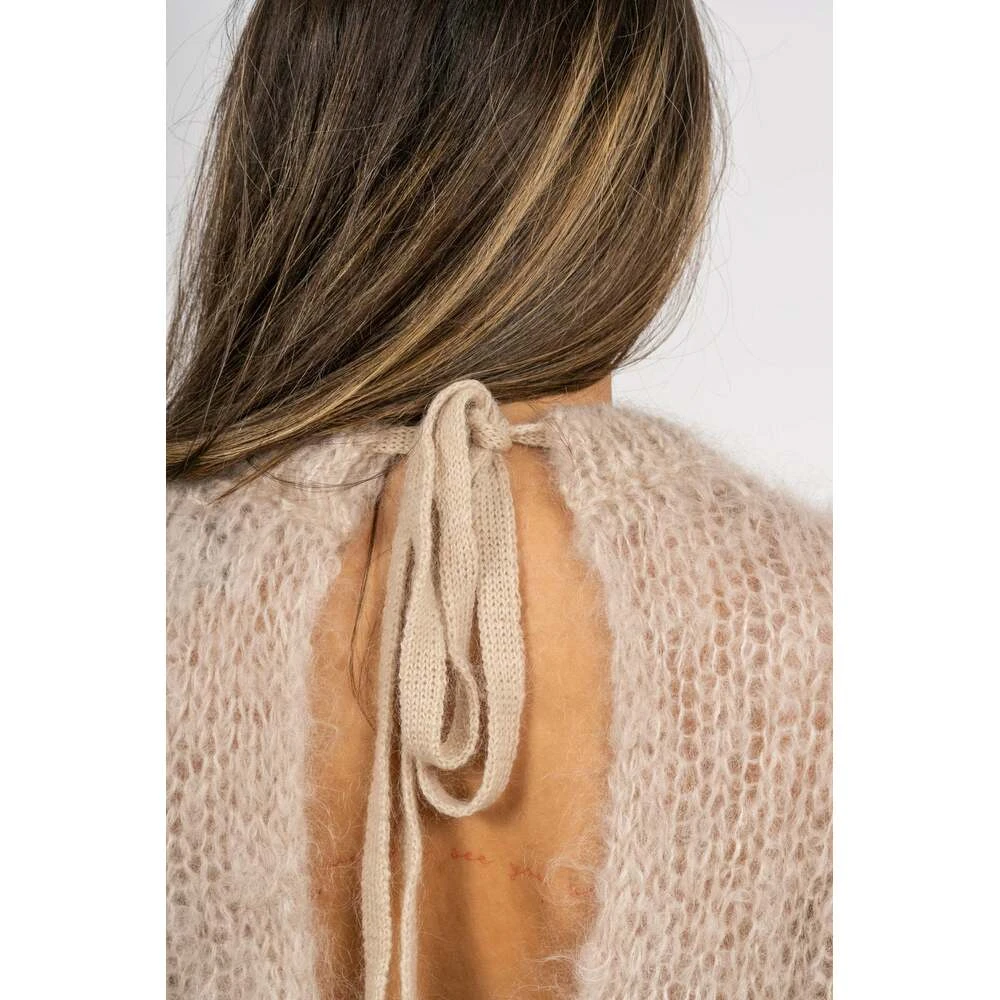- Den amerikanske drømmen Toga Back Tie Pullover i beige er en tidløs og elegant strikkejakke for damer. Denne jakken kombinerer stil og komfort for enhver anledning.