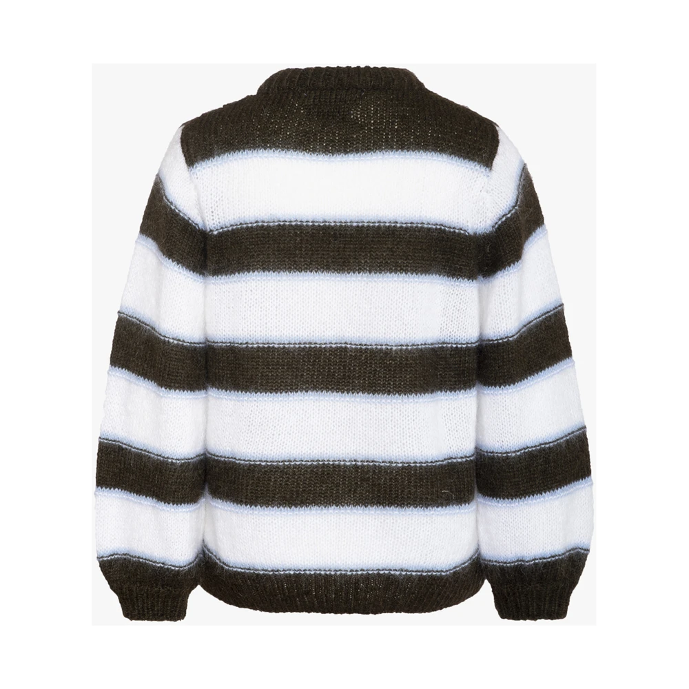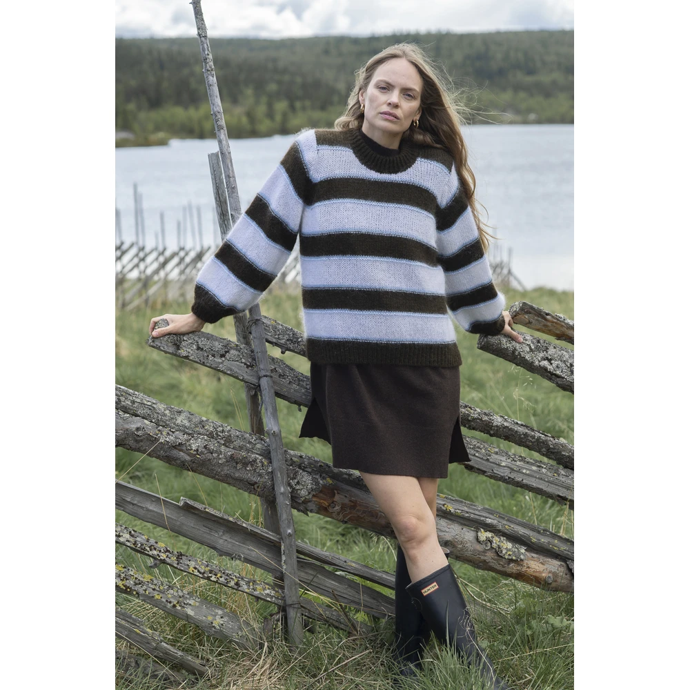 - Arnie Says Mørkebrun Melrose Stripe Genser White er en stilfull og komfortabel strikkejakke designet for moderne kvinner. Denne genseren kombinerer klassisk strikkestil med moderne detaljer for en tidløs look.