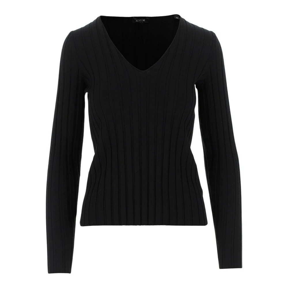 - Den stilrene Aspesi V-hals strikkegenseren i svart er et must-have for enhver damegarderobe. Denne genseren er laget av høykvalitetsmaterialer for maksimal komfort og holdbarhet.