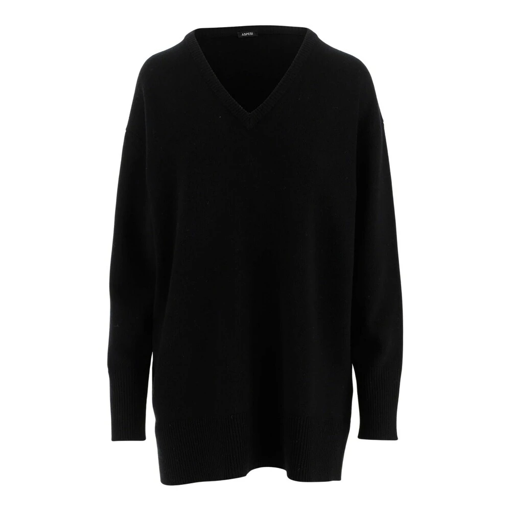 - Den Aspesi V-hals strikkegenseren i svart er en must-have for enhver dame som verdsetter kvalitet og stil. Denne genseren er laget av premium materialer som sikrer både komfort og holdbarhet.