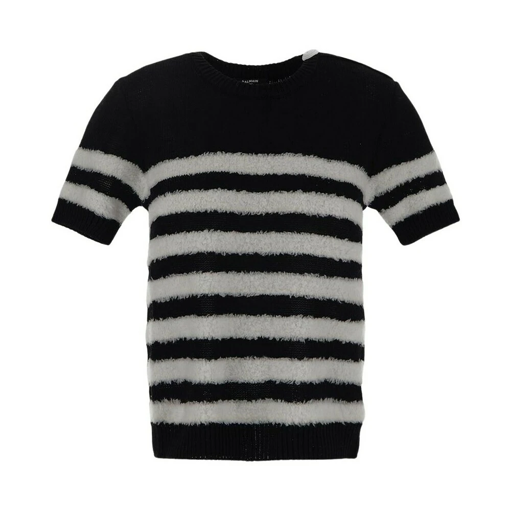 - Balmains stripet strikkeskjorte i svart er en must-have for den moderne kvinnen. Denne overdelen kombinerer tidløs eleganse med en avslappet stil.