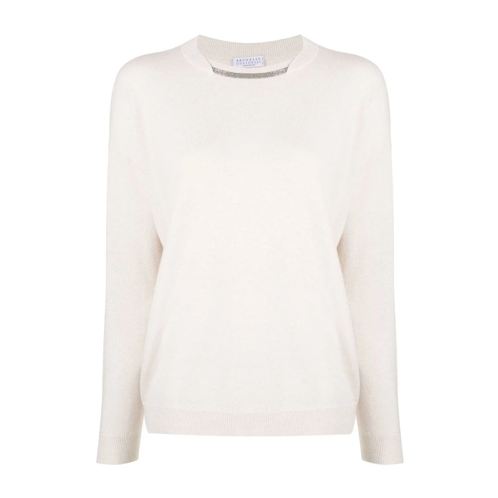 - Brunello Cucinellis rundhalsede genser i beige er en tidløs og elegant tilføyelse til din garderobe. Denne strikkejakken er perfekt for både formelle og uformelle anledninger.
