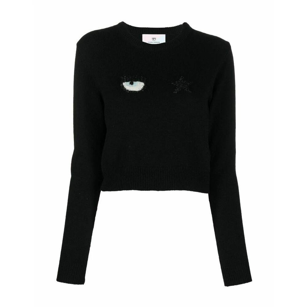 - Denne svarte strikkegenseren fra Chiara Ferragni Collection kombinerer stil og komfort. Den er laget av mykt, holdbart materiale som gir en perfekt passform.