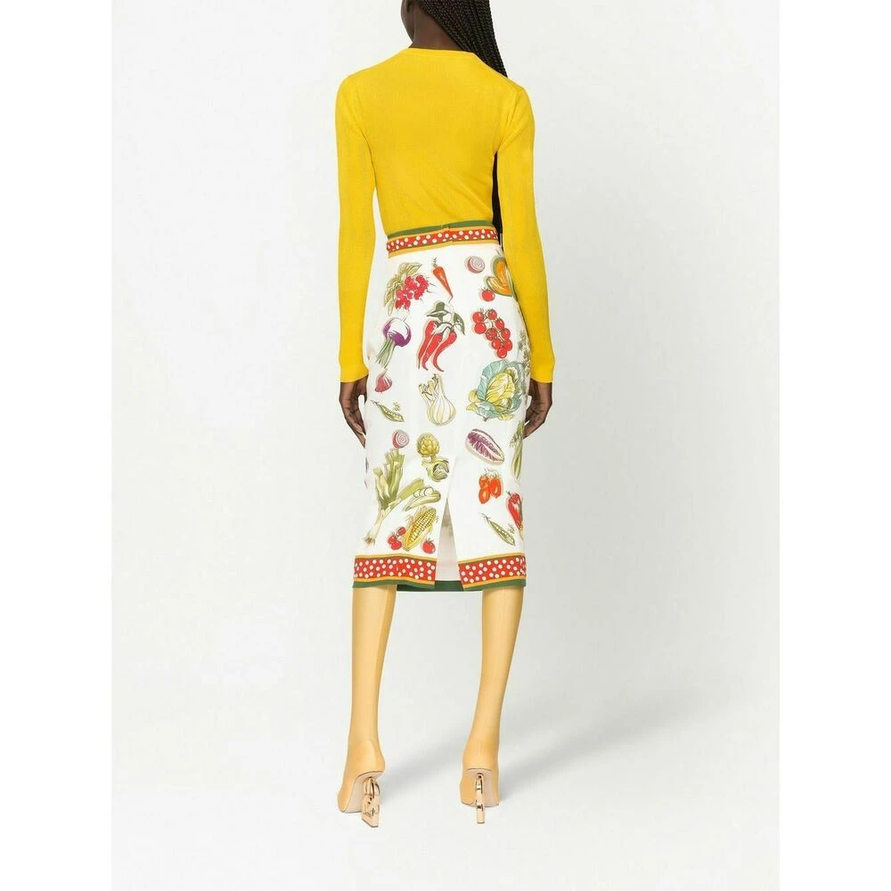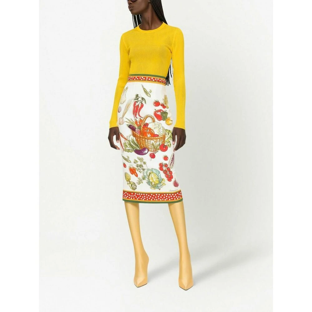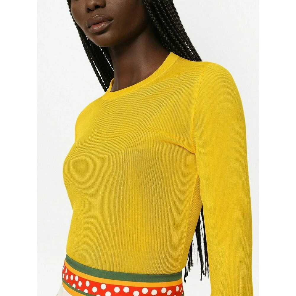 - Dolce & Gabbana Gul Strikkegenser er en stilfull og komfortabel dameoverdel, designet for å imponere. Denne genseren er laget av mykt og holdbart materiale, noe som gjør den ideell for både høytider og hverdagsbruk.