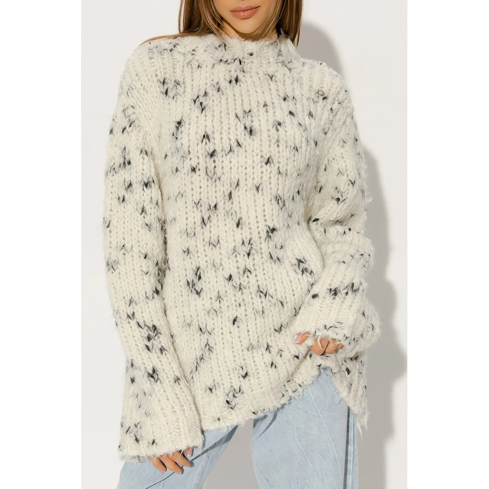 - Elevate your wardrobe with the Dries Van Noten Beige Standing Collar Sweater. Crafted from high-quality materials, this sweater offers both comfort and style.