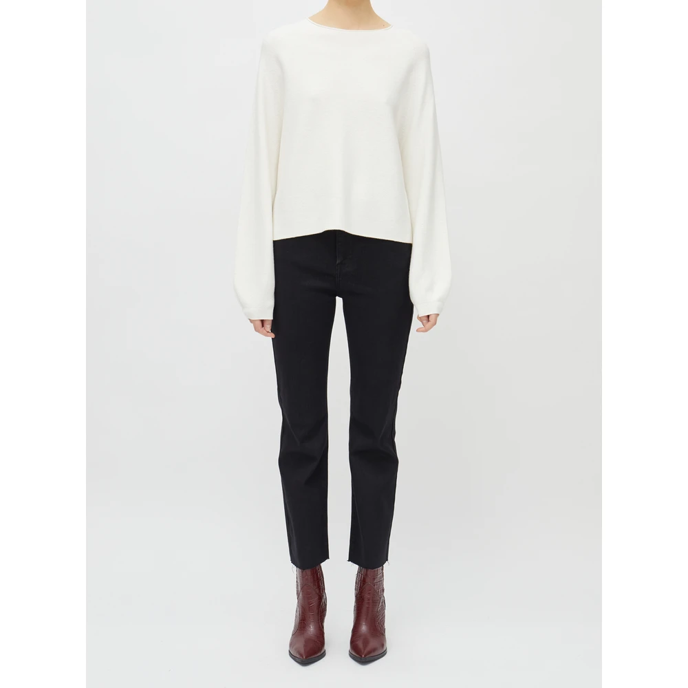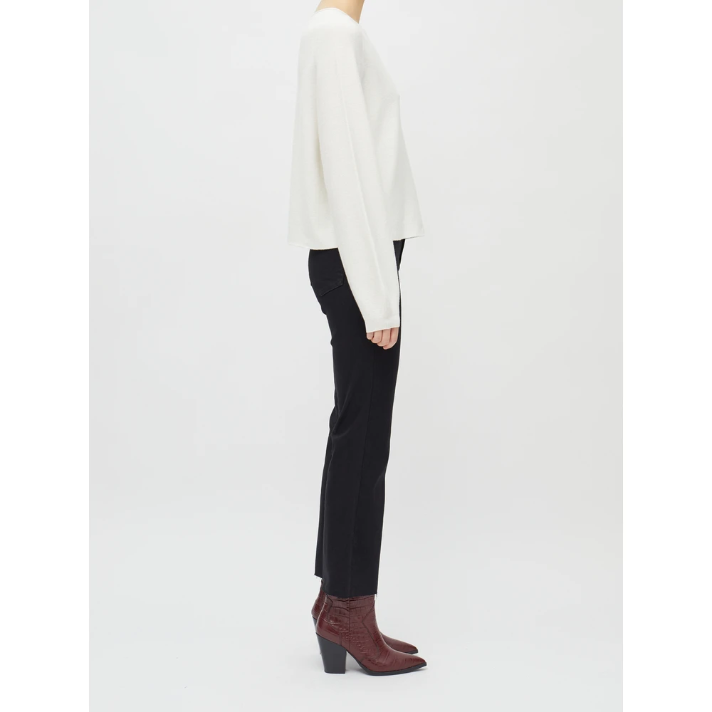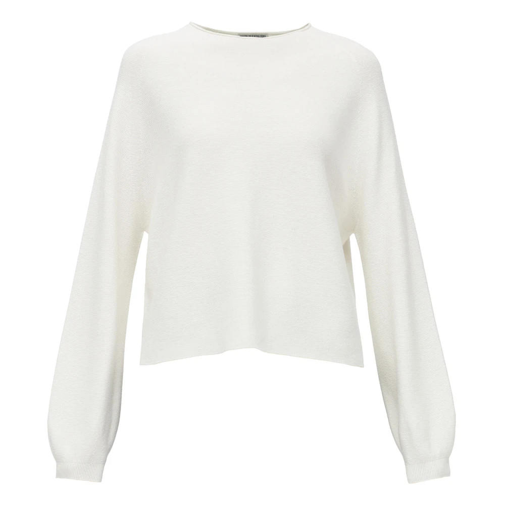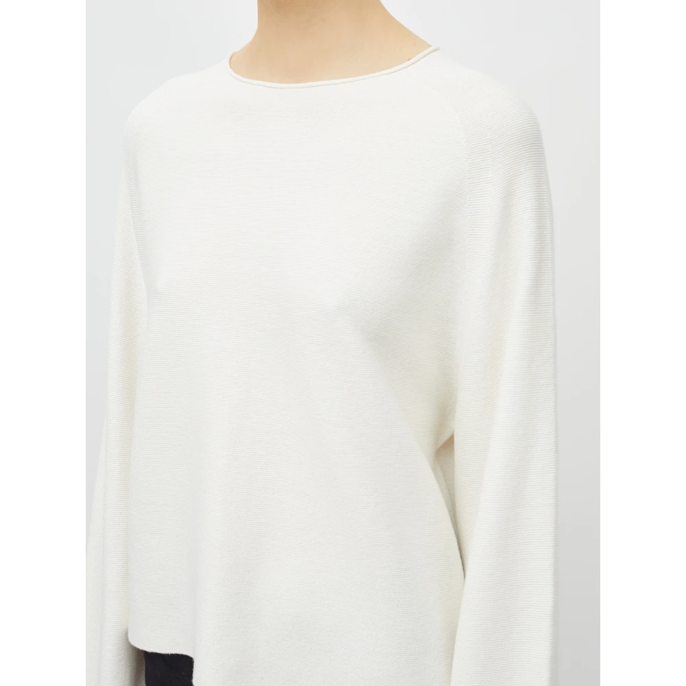 - Designet med overdekte skuldre gir denne genseren en sofistikert og moderne look. Den hvite fargen gir den en tidløs eleganse som passer til enhver garderobe.