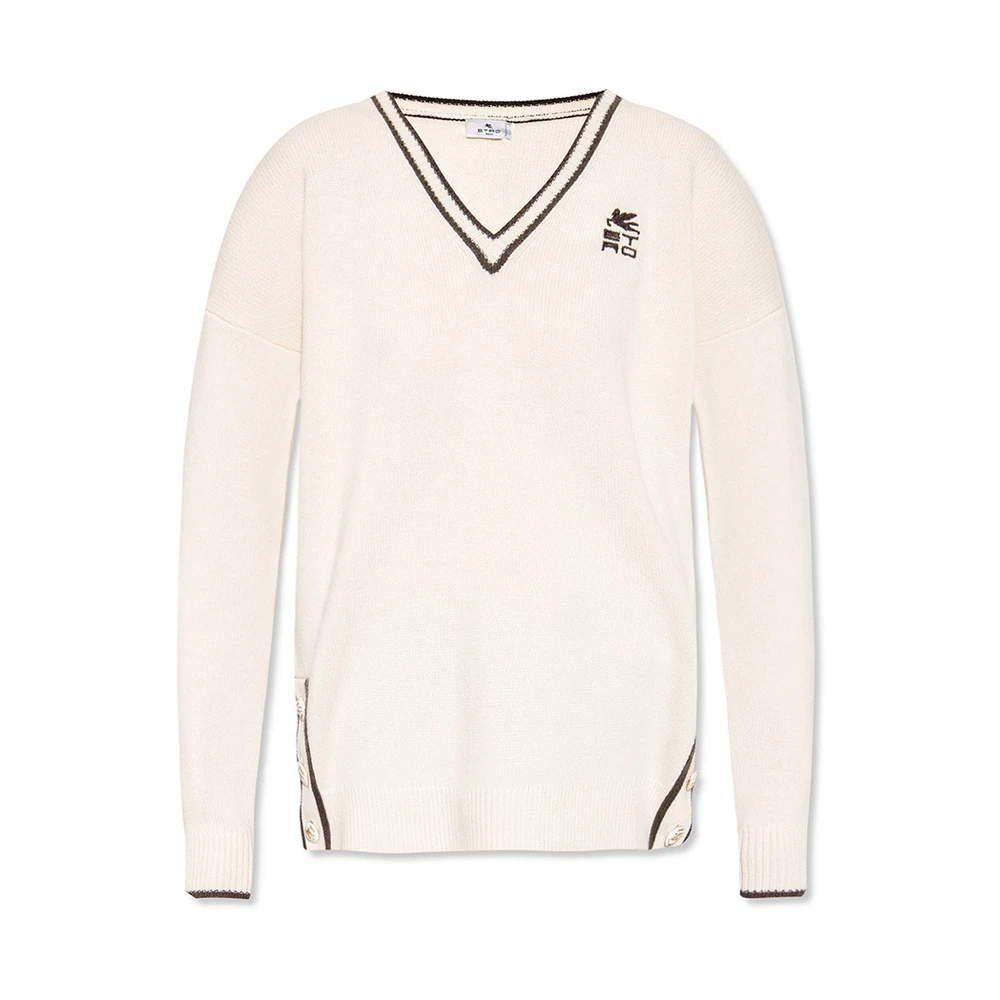 - Den stilrene Etro Sweater With Logo Beige er en must-have for enhver motebevisst kvinne. Denne overdeleren er laget av høykvalitetsmaterialer for maksimal komfort og holdbarhet.