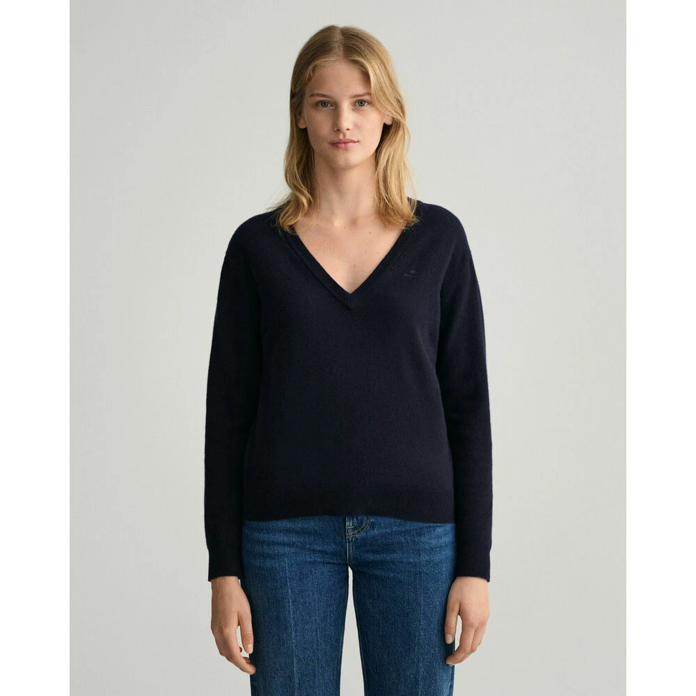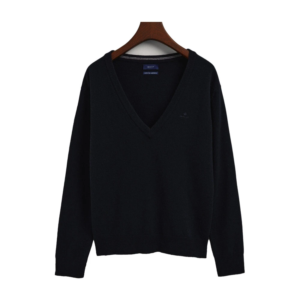 - Gant Superfine Lambswool V-Neck Overdeler for Dame i en vakker blå farge. Denne overdeleren er laget av superfin lammeull for maksimal komfort og varme.