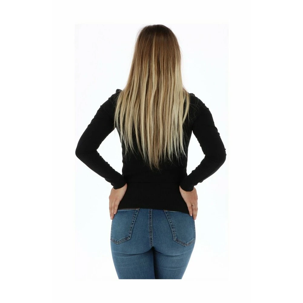 - Guess Svart Strikkegenser er designet for å passe perfekt til enhver kroppsform. Den tidløse svarte fargen gjør den til et allsidig plagg som kan kombineres med nesten hva som helst.