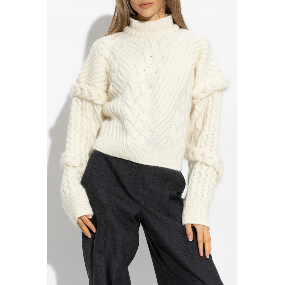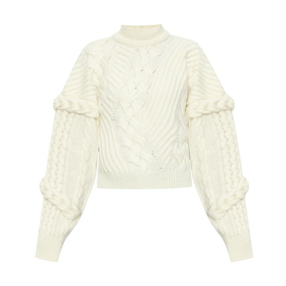 - Den stilrene Iceberg Sweater med ståkrage i beige er en must-have for den moderne kvinnen. Denne strikkejakken er designet for å gi deg en sofistikert og elegant look.