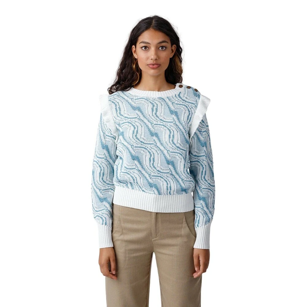 - iiS Woodling Diana Overdeler i Blå er en elegant og komfortabel strikkejakke for damer, designet for å gi deg varme og stil hele året.