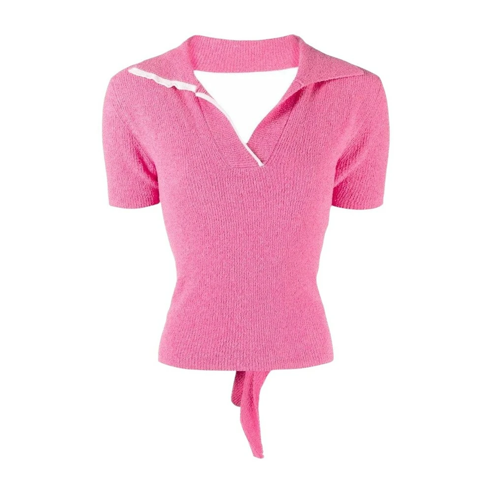 - Den ikoniske Jacquemus V-hals strikkejakken i rosa er et must-have for den moderne kvinnen. Den kombinerer komfort med høy mote.