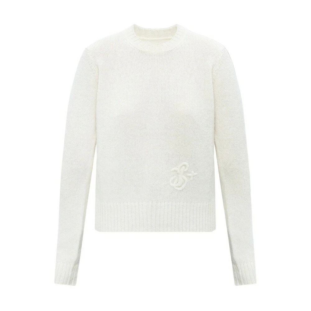 - Jil Sander Hvit Logo Genser er en stilren og tidløs strikkegenser som kombinerer komfort med sofistikert design. Perfekt for både hverdagsbruk og mer formelle anledninger.