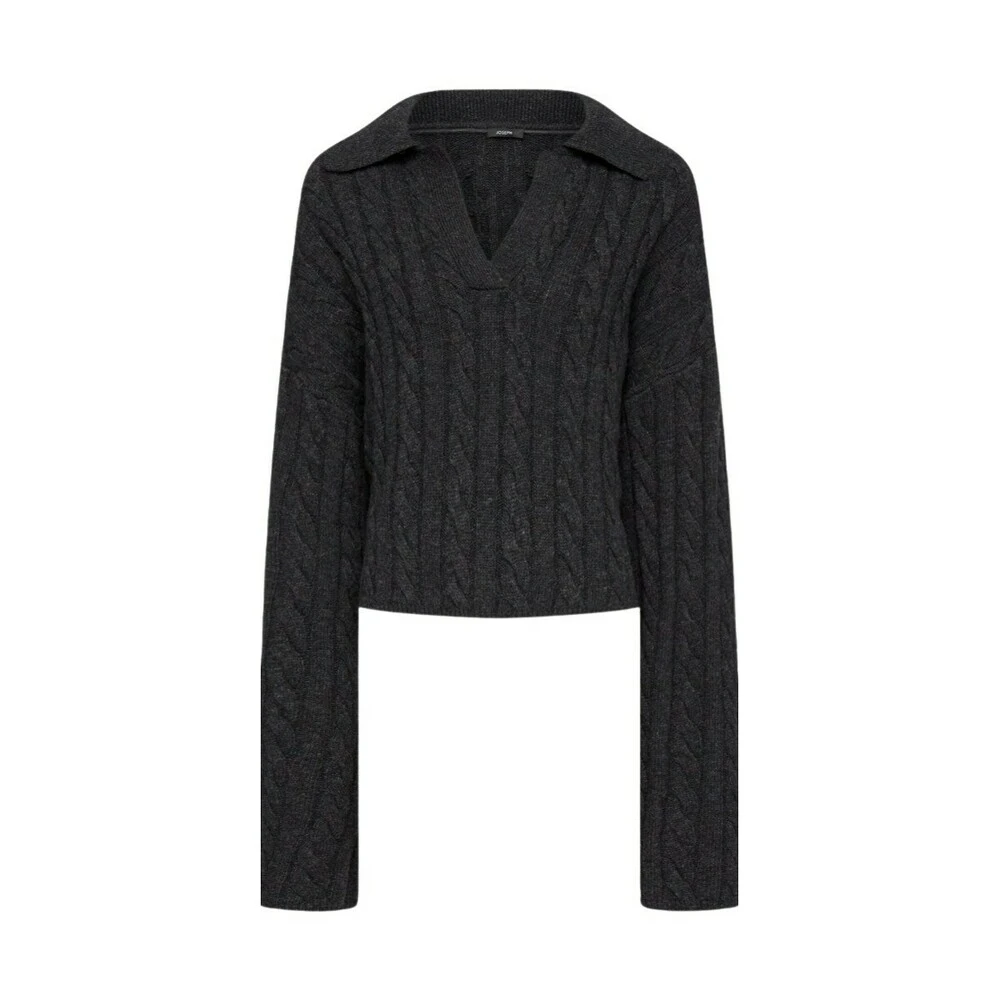 - Josephs V-hals strikkegenser i grå er en must-have for enhver moderne kvinne. Den kombinerer komfort med stil for å gi deg en sofistikert look.