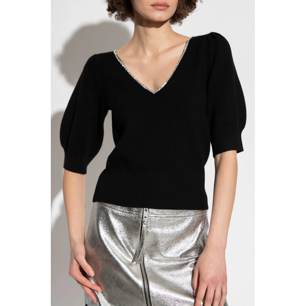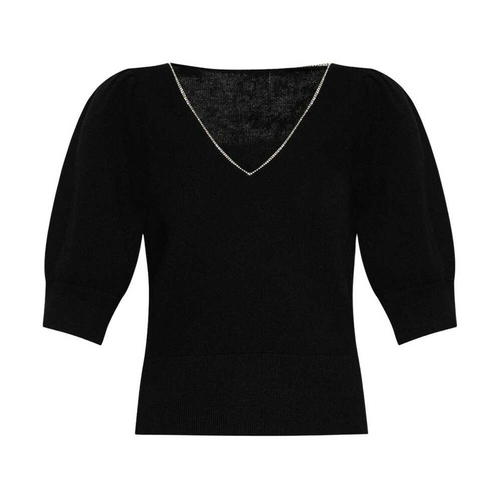 - Den stilrene Kate Spade V-hals strikkgenseren i svart er et must-have for enhver moderne kvinne. Den tidløse designen gjør den perfekt for både formelle og uformelle anledninger.