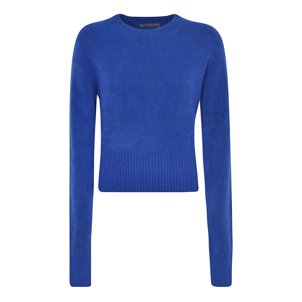 - Laneus Rundhalset Strikkegenser i Blå er en must-have for enhver dame som verdsetter både stil og komfort. Denne genseren er laget av høykvalitets materialer som gir en myk og behagelig følelse mot huden.