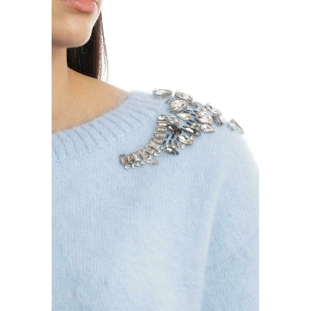 - Liu Jo’s rundhalset strikkejakke i blå er en must-have for enhver damegarderobe. Denne genseren kombinerer stil og komfort for en sofistikert look.