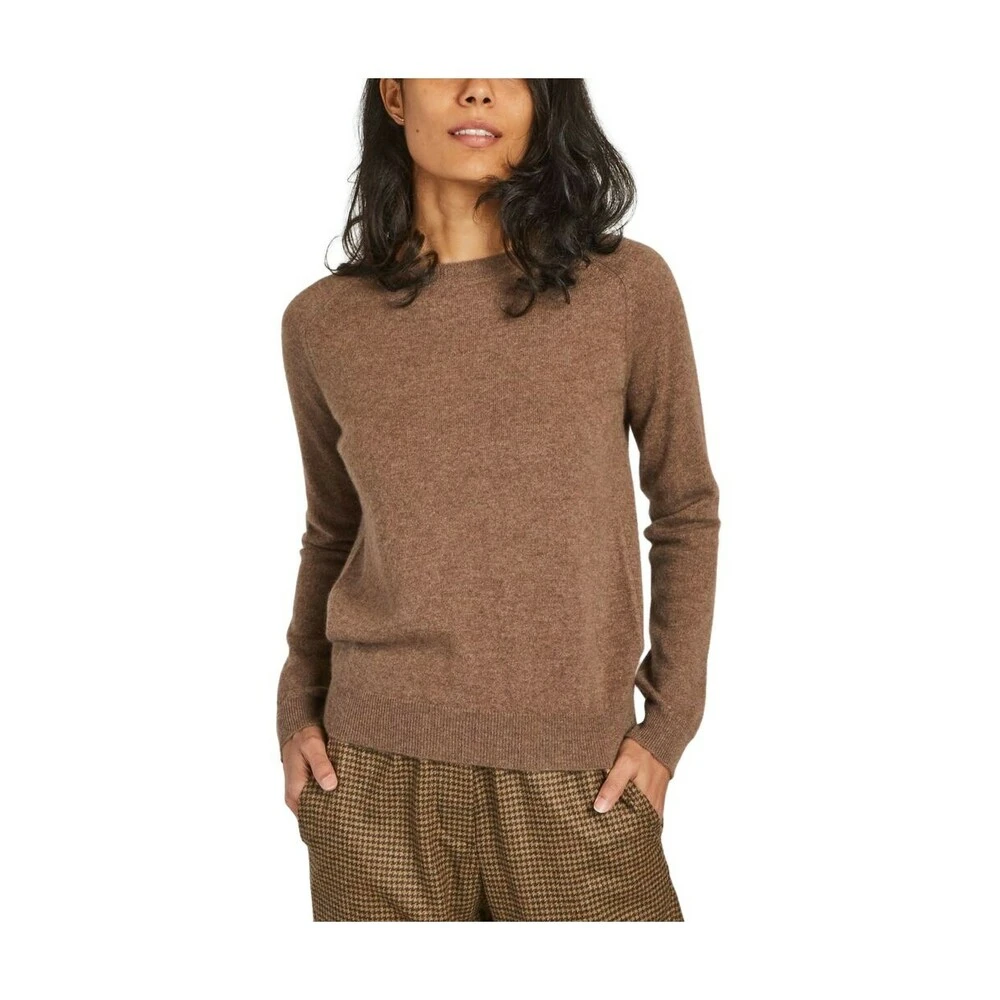 - Majestic Filatures rundhalset strikkegenser i brun er en must-have for enhver dame som verdsetter både stil og komfort.
