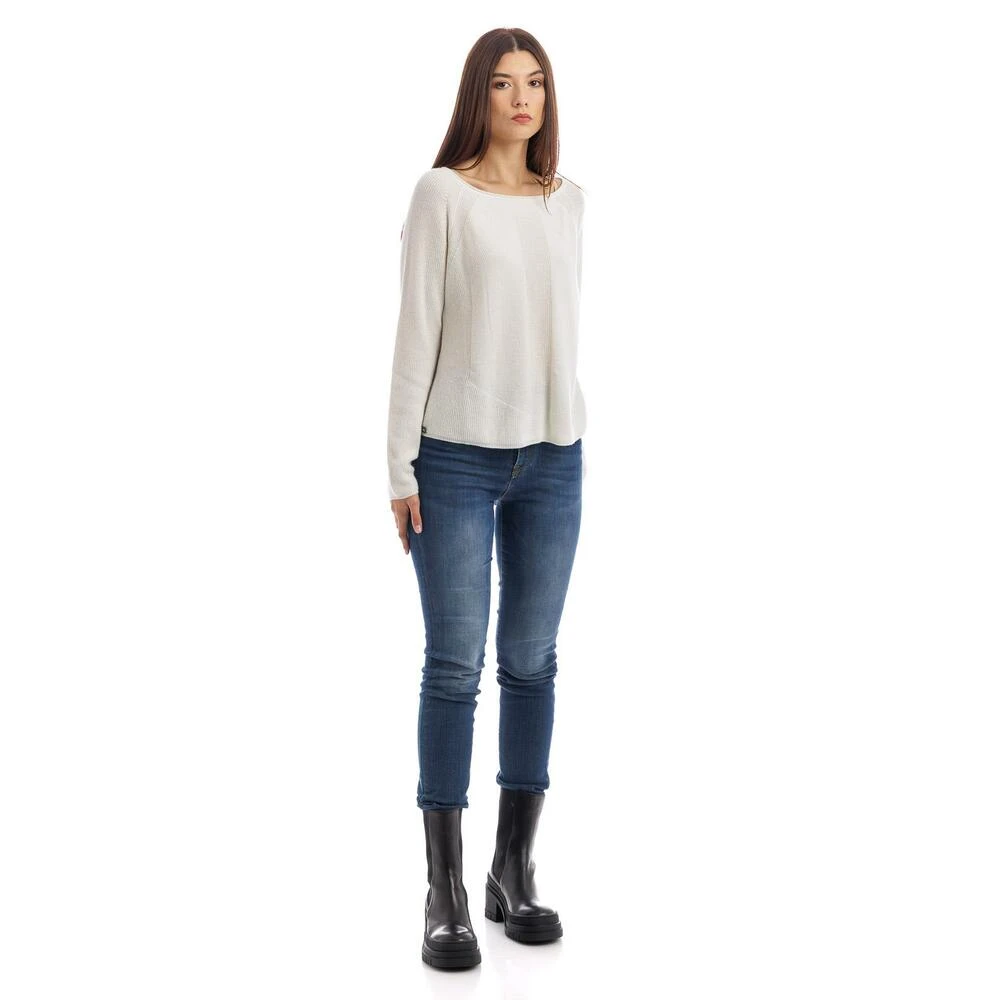 - Manila Grace rundhalset strikket genser i hvit er laget av høykvalitetsmaterialer for maksimal komfort og holdbarhet.