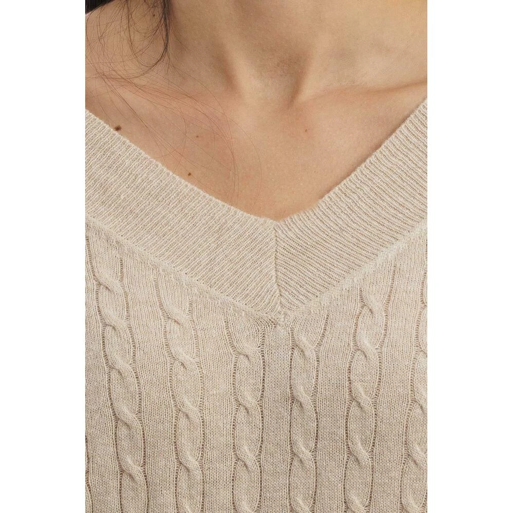 - Den stilrene Manila Grace V-hals strikkegenseren i beige er laget for Ä gi deg maksimal komfort og stil. Perfekt for bÄde hverdagsbruk og spesielle anledninger.