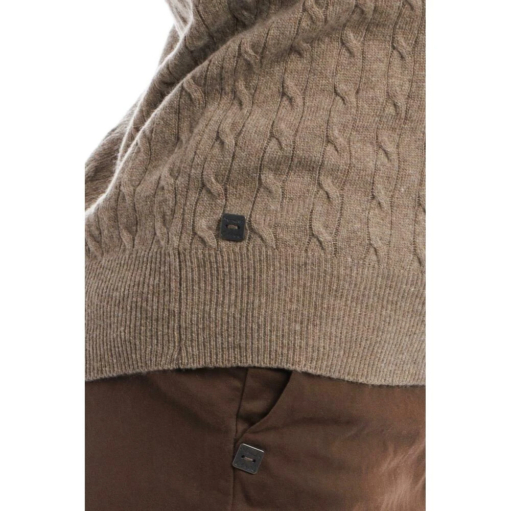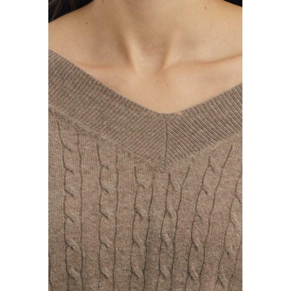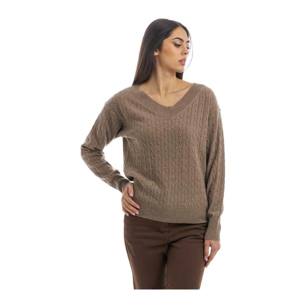 - Elegant V-hals strikkegenser fra Manila Grace i varm brun farge, perfekt for enhver anledning.