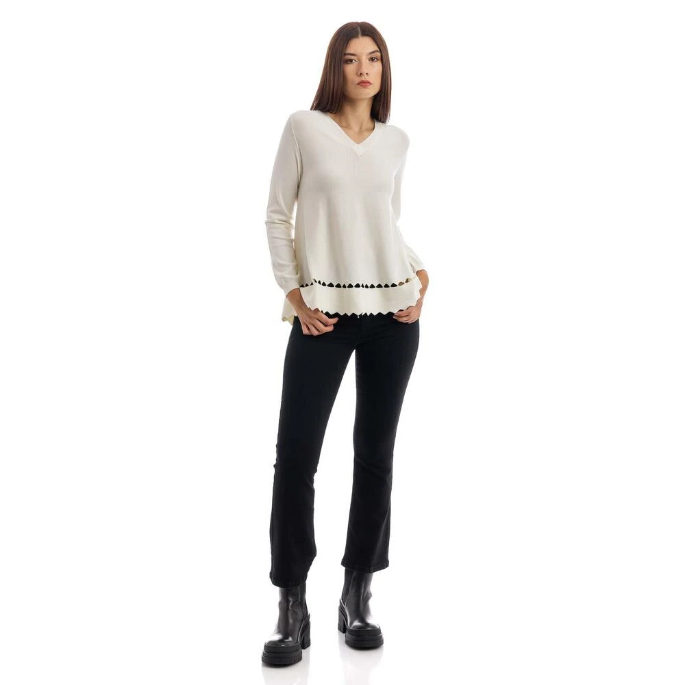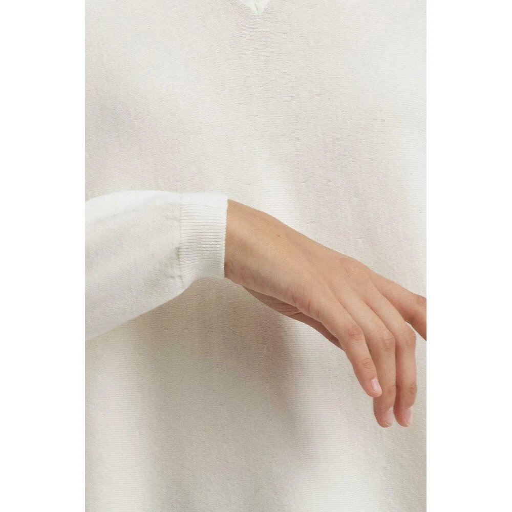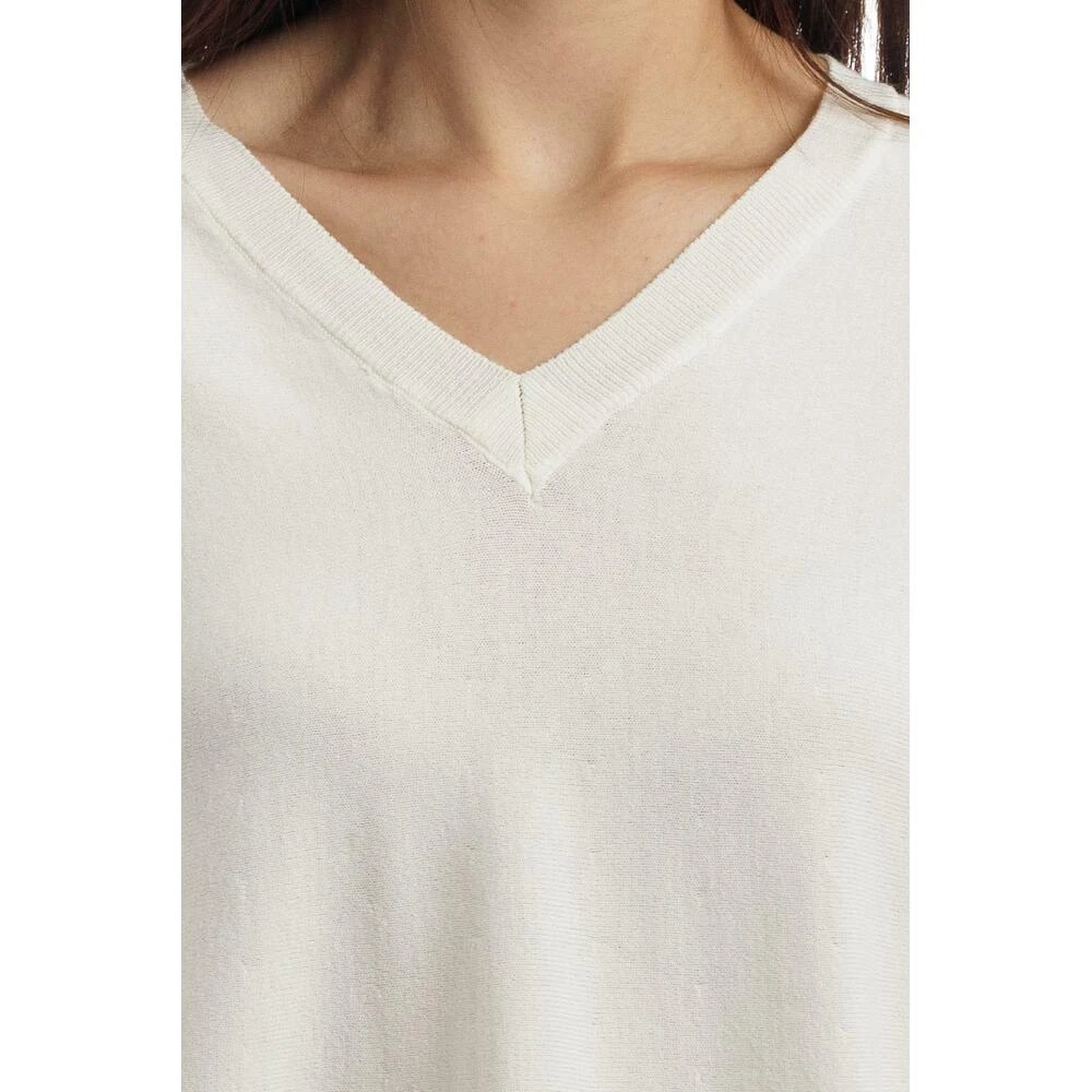 - Den stilrene Manila Grace V-hals strikkgenseren i hvit er designet for å gi deg en elegant og komfortabel opplevelse. Perfekt for både formelle og uformelle anledninger.