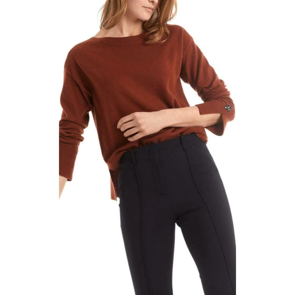Det tyske motefirmaet Marc Cain ble grunnlagt i 1973. MARC Cain gir gode krav til design, kvalitetsmaterialer og en god passform. Samlingene er fantasifulle, med unike grafiske utskrifter og vakre detaljerte ting. Nfijn strikket genser fra ren kasjmir med en bred silhuett og avslappet, overdimensjonerte skuldre. Denne luksuriøse Cashmere-genseren er for mansjetter med Split dekorert med store krystall dekorative knapper. Farge: Mahogany nonchalant modell noboothhals