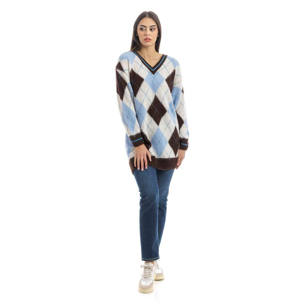 - Den stilige MC2 Saint Barth V-hals strikkejakken i blå er en must-have for enhver kvinne som ønsker å kombinere komfort og eleganse. Denne dameoverdelen er perfekt for både hverdagsbruk og spesielle anledninger.