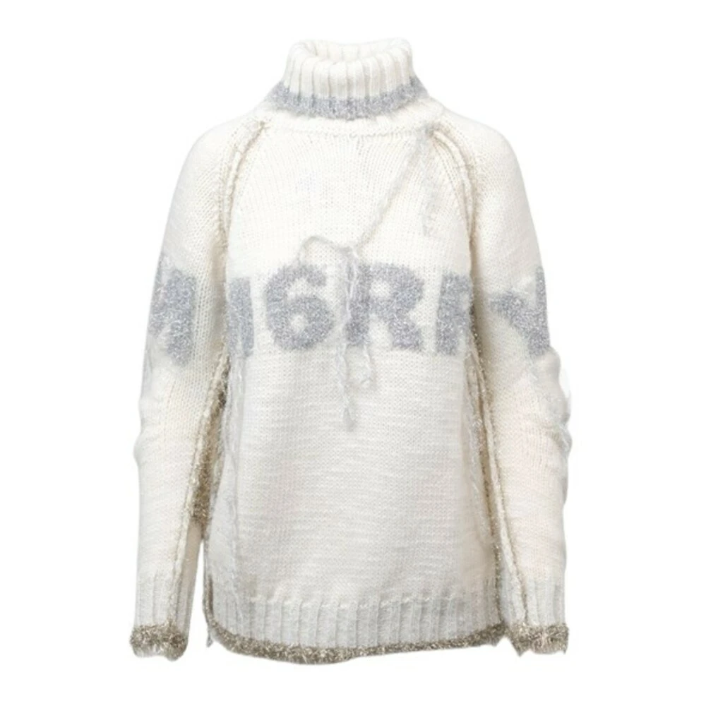 - MM6 Maison Margielas hvite rundhalsede genser er en must-have for enhver moderne garderobe. Denne strikkegenseren kombinerer stil og komfort for en elegant look.