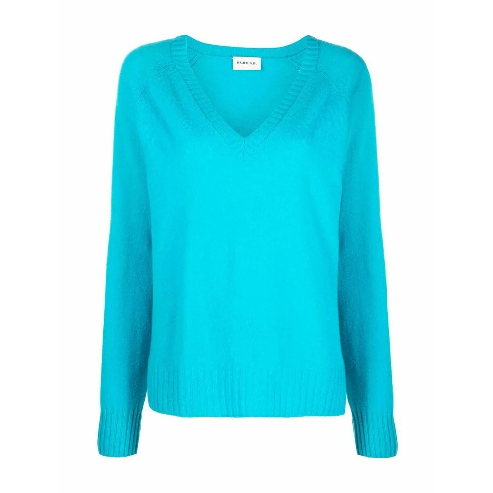 - P.A.R.O.S.H. Sweater Blue er en stilfull og komfortabel strikkejakke designet for moderne damer. Den blå fargen gir et friskt og tidløst utseende.