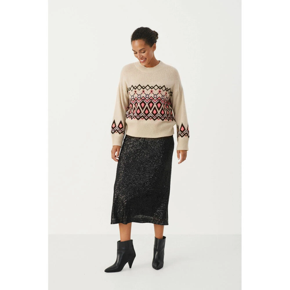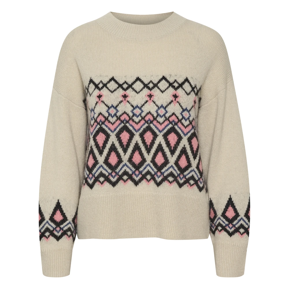 - Stilfull og behagelig: Part Two’s rundhalset strikket genser i beige er designet for å gi deg en sofistikert look samtidig som den tilbyr maksimal komfort.