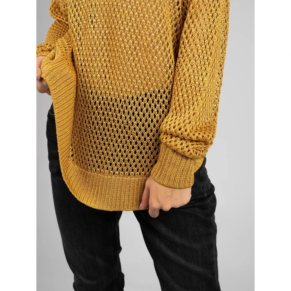 - Designet med en rund hals og i en vakker gul farge, gir denne genseren et moderne og tidløst utseende. Den er perfekt for både formelle og uformelle anledninger.