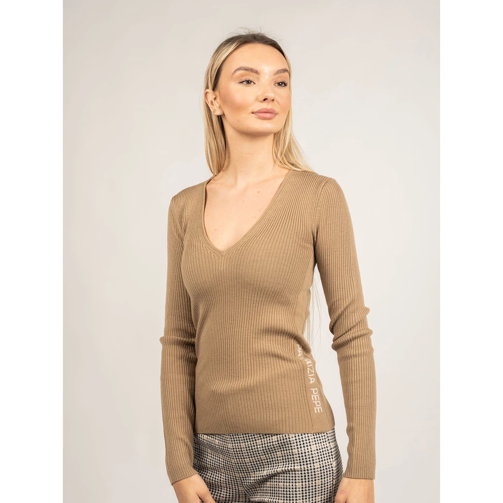 - Vi tilbyr rask og pålitelig levering, samt enkel og sikker betaling. Kjøp din Patrizia Pepe Rundhalset Strikkgenser i Beige i dag og oppgrader garderoben din med dette stilige plagg!