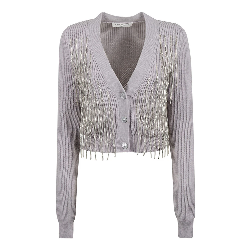 - Philosophy Di Lorenzo Serafini V-hals strikkegenser i grå er et must-have plagg for den moderne kvinnen. Den kombinerer komfort med høy kvalitet for en elegant look.