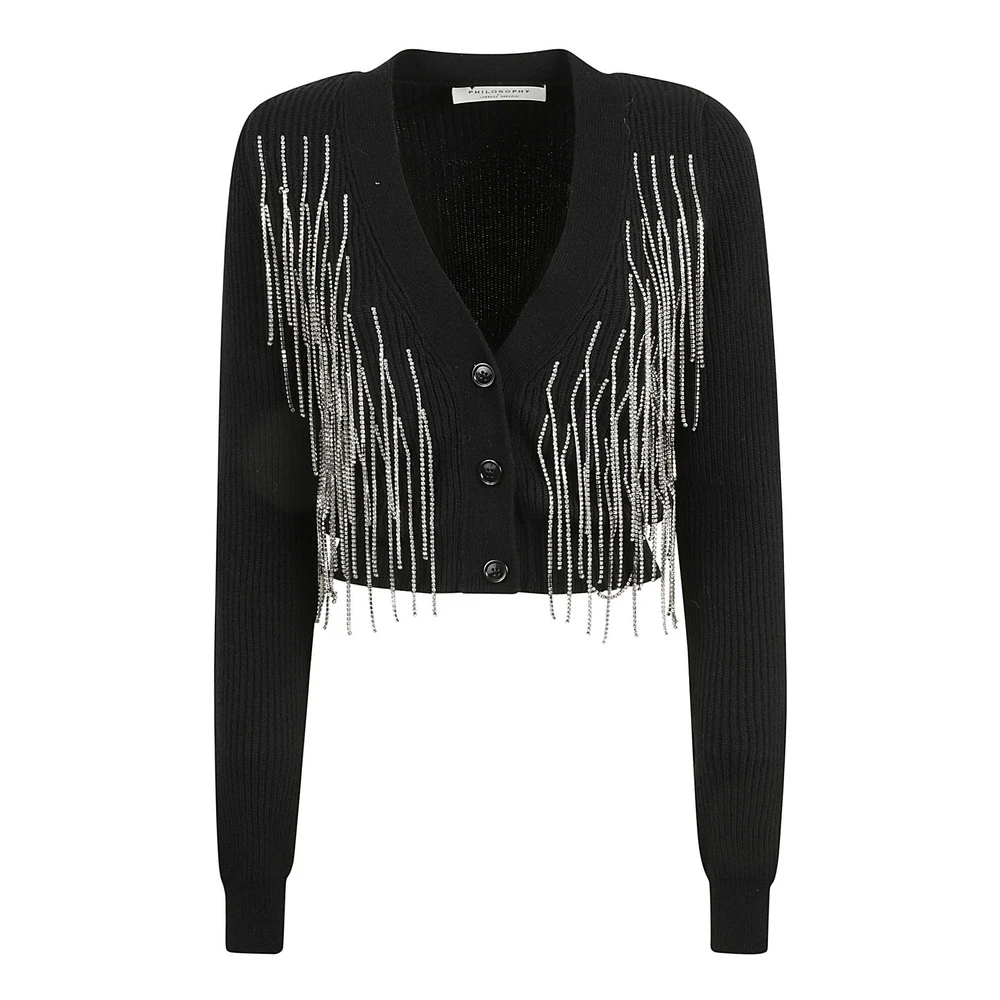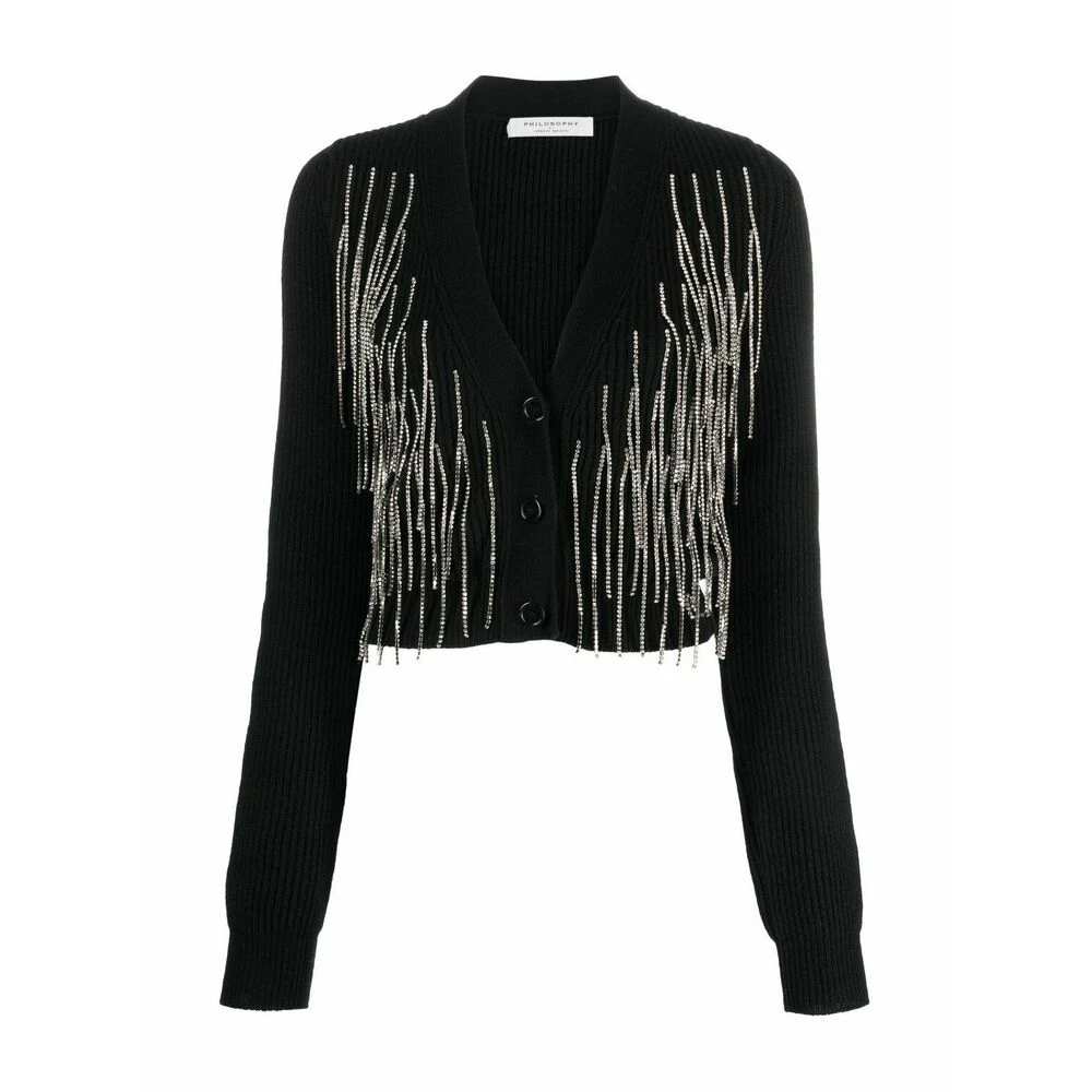 - Philosophy Di Lorenzo Serafini V-hals strikkegenser i svart er en must-have for den moderne kvinnen. Denne genseren kombinerer komfort og stil, og er perfekt for både formelle og uformelle anledninger.
