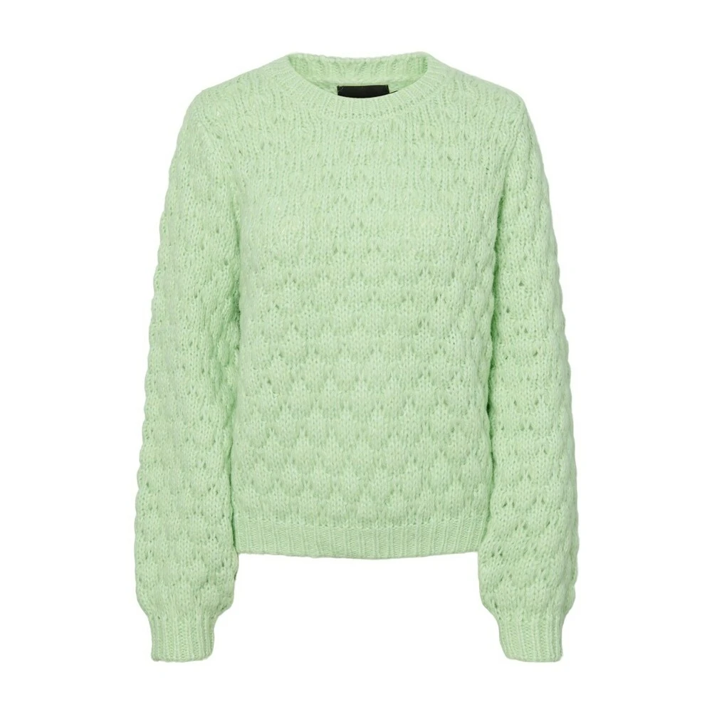 - Pieces rundhalset strikkejakke i grønn er en must-have for enhver damegarderobe. Denne genseren kombinerer stil og komfort for en elegant hverdagslook.