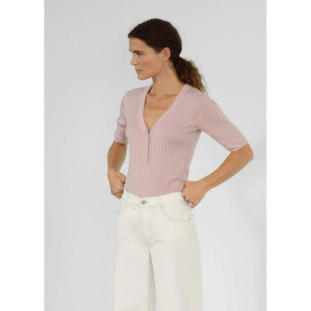 - Pieszak V-hals Strikkegenser er tilgjengelig i en vakker rosa farge, som gir et friskt og feminint preg til din garderobe. Den passer perfekt for alle årstider.
