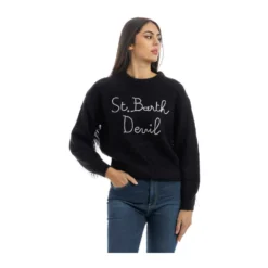 MC2 Saint Barth Rundhalset strikkejakke i svart – Elegant og behagelig dameoverdel