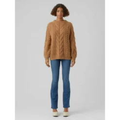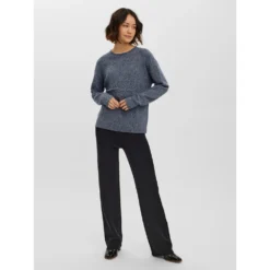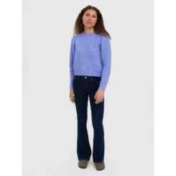 VERO MODA Lilla Vmlefile Langermet Ribbet Bluse med O-Neck i Lilla | Dame Strikkejakker & Gensere