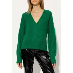 Victoria Beckham V-hals Strikkegenser i Grønn | Elegant Dameoverdel