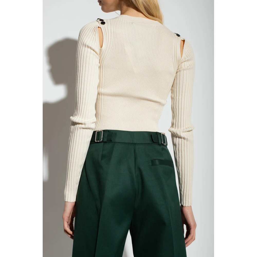 - Proenza Schouler Ribbet Topp i Hvit er en must-have for den moderne kvinnens garderobe. Denne toppen kombinerer komfort og stil med sin myke strikketekstur og tidløse design.