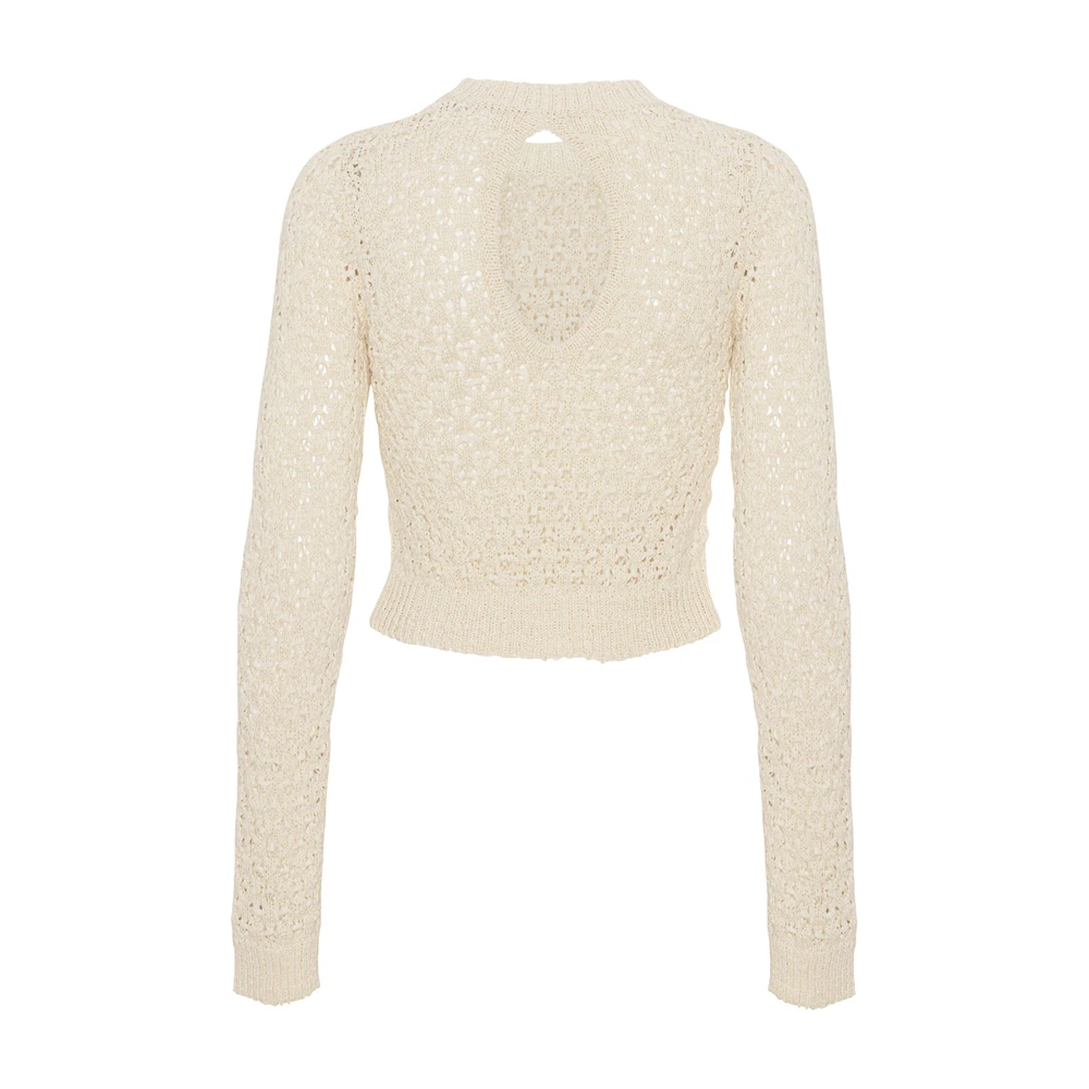 - ROTATE Birger Christensen Patricia Cut-Out Knit Top i hvit er en stilfull og moderne topp som kombinerer komfort og eleganse. Denne toppen er perfekt for både hverdagsbruk og spesielle anledninger.