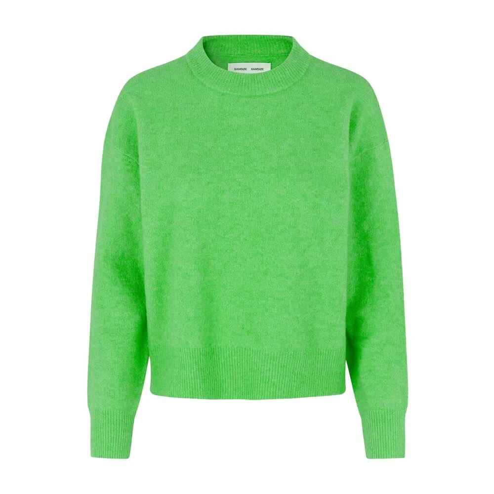 - Samsøe Samsøe Dame Rundhalset Genser i Grønn er laget av høykvalitetsmaterialer for optimal komfort og holdbarhet. Den myke strikketeksturen gir en behagelig følelse mot huden.