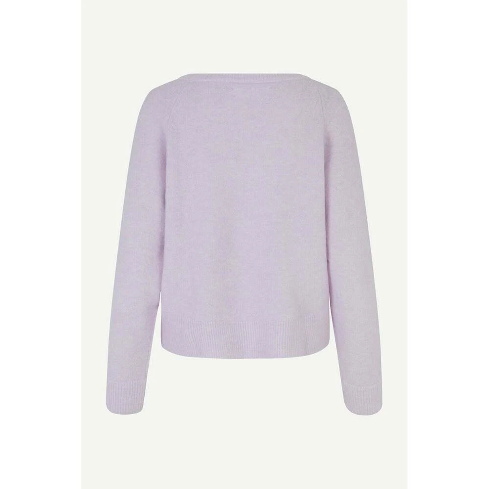 - Samsøe Samsøe rundhalset strikkejakke i lilla er en must-have for enhver dame som ønsker å kombinere stil og komfort. Denne jakken er laget av høykvalitets materialer som sikrer holdbarhet og en myk følelse mot huden.