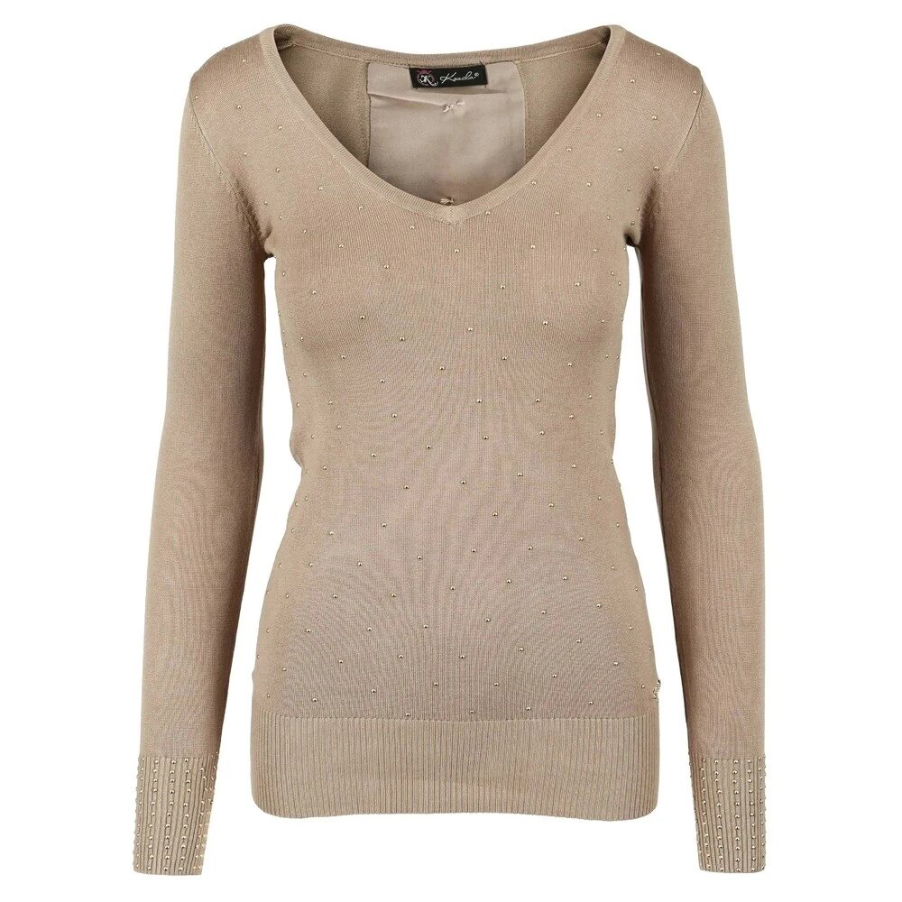 - SII Tan Genser Brown er en stilfull og allsidig strikket genser for damer, designet for å tilby både komfort og eleganse. Den nøytrale brune fargen gjør den perfekt for å matche med ethvert antrekk.