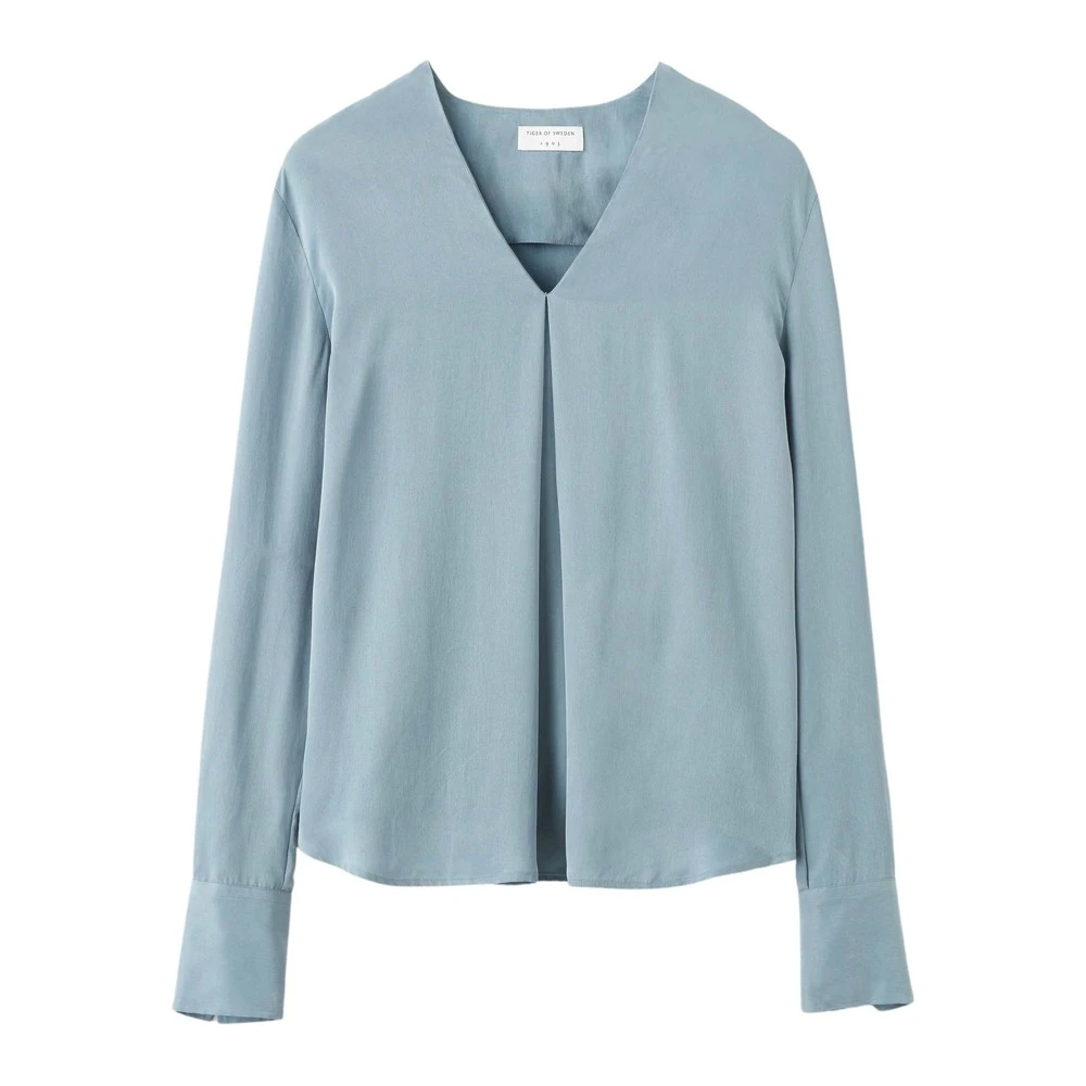 Skjorte i drapert cupro Rett fit hoftelengde lange hylser V-utsnitt med folder foran mansjett med knapper Fremstilt i Romania Flertallet av stoffet av dette produktet er en foretrukket fiber i henhold til vår standard fiber. Les mer om det her.