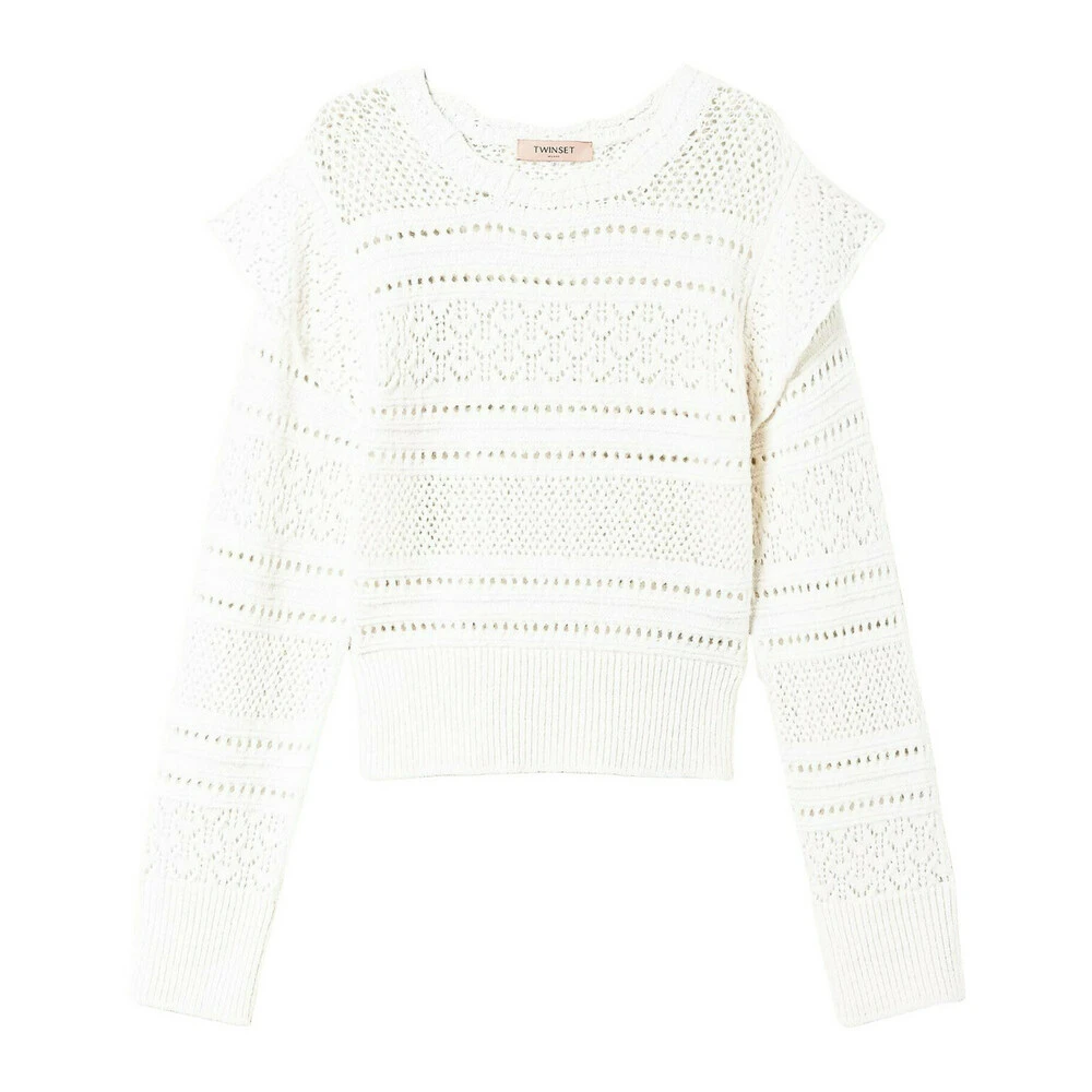 - Den stilrene Twinset Hvit Strikkegenser er laget av høykvalitetsmaterialer for maksimal komfort og holdbarhet.